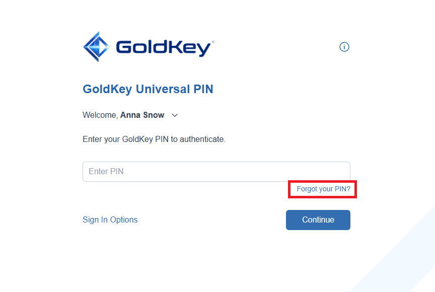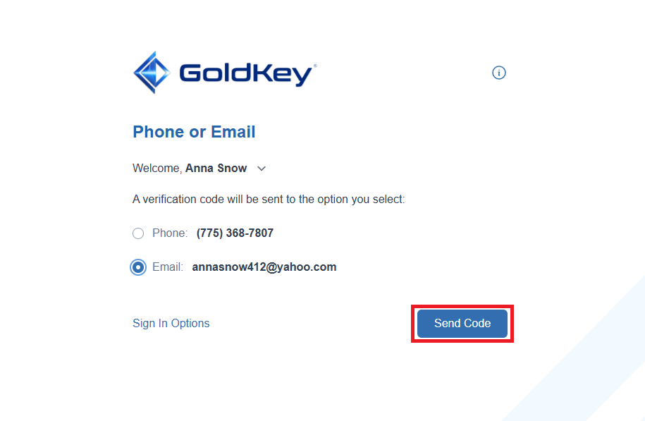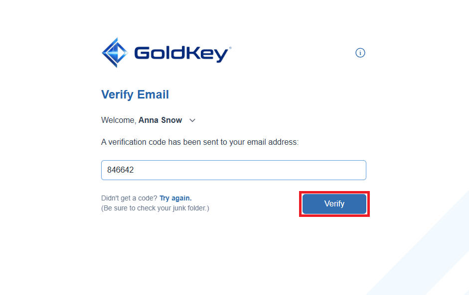 - The verification code will be resent if the GoldKey sign-in window is closed.