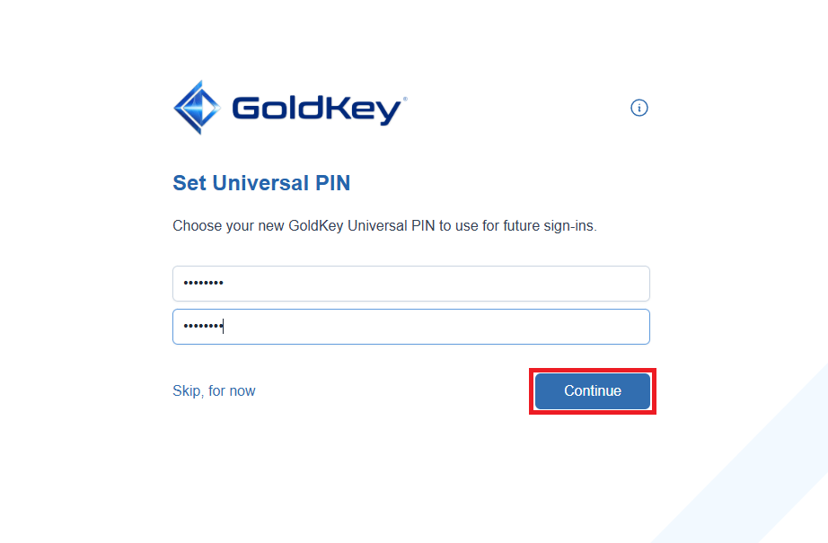 You’ll now see the page to set your new PIN. Enter a PIN with at least 4 digits, then click Continue.
